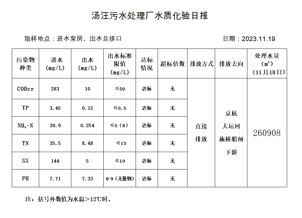 汤汪污水处理厂水质化验日报(2023.11.19)
