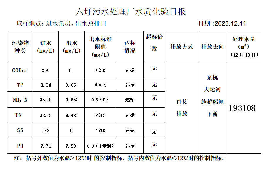 六圩污水处理厂水质化验日报(2023.12.14)