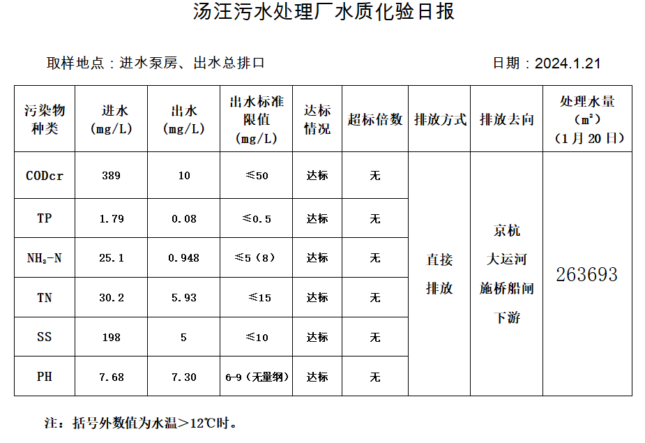 汤汪污水处理厂水质化验日报(2024.1.21)