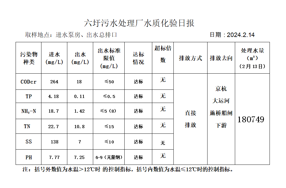 六圩污水处理厂水质化验日报(2024.2.14)