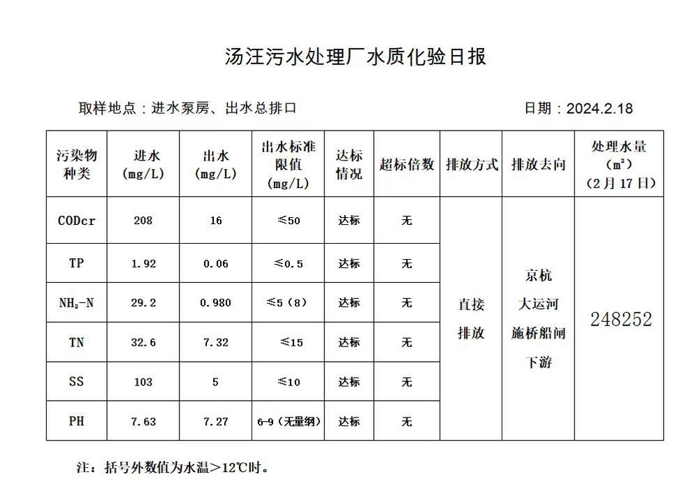 汤汪污水处理厂水质化验日报(2024.2.18)