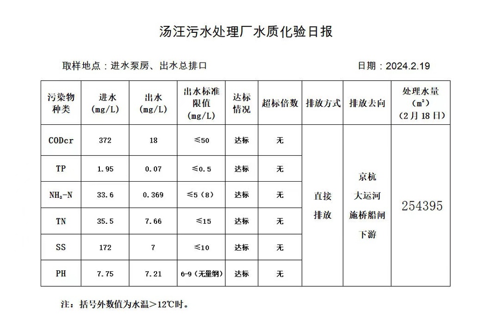 汤汪污水处理厂水质化验日报(2024.2.19)