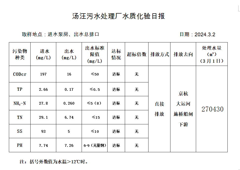 汤汪污水处理厂水质化验日报(2024.3.2)