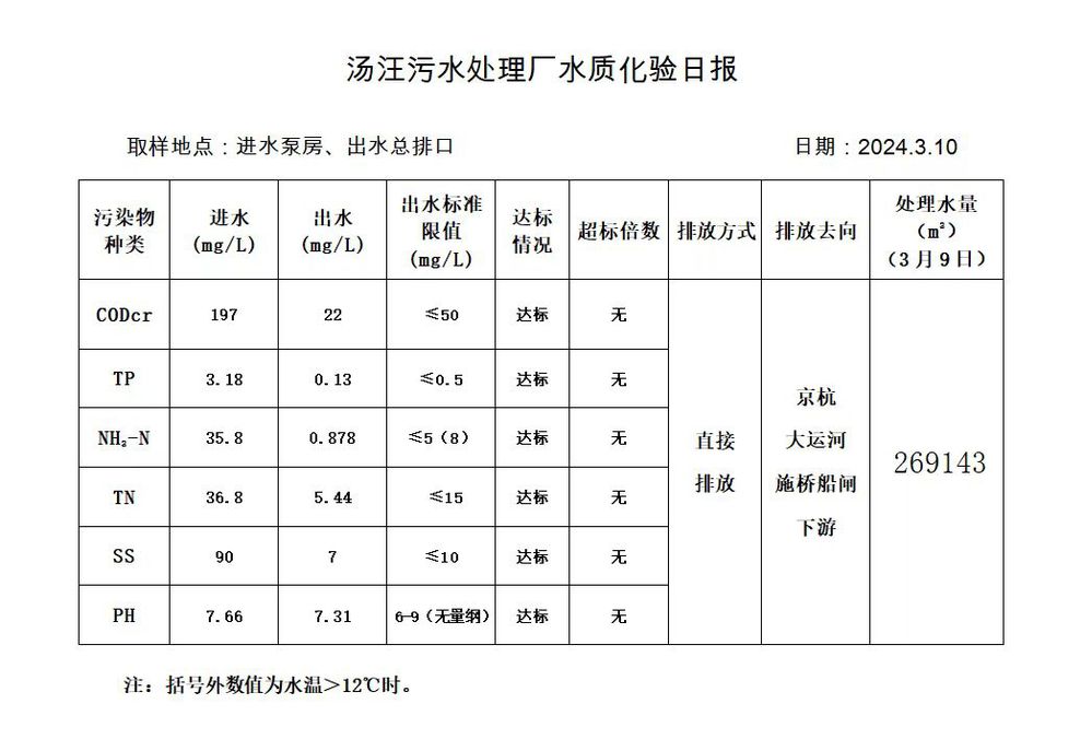 汤汪污水处理厂水质化验日报(2024.3.10)