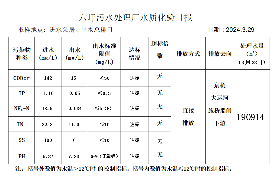 六圩污水处理厂水质化验日报(2024.3.29)