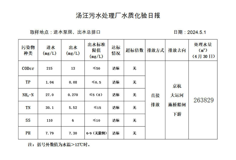 汤汪污水处理厂水质化验日报(2024.5.1)