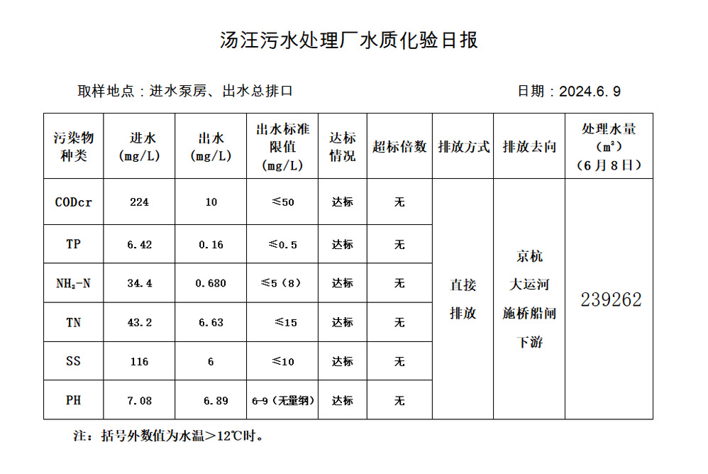 汤汪污水处理厂水质化验日报(2024.6.9)