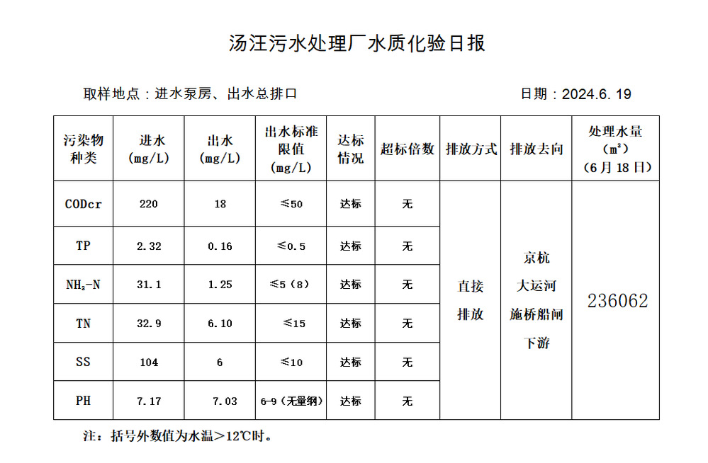 汤汪污水处理厂水质化验日报(2024.6.19)