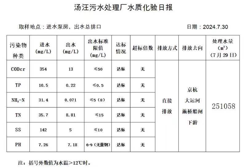 汤汪污水处理厂水质化验日报(2024.7.30)