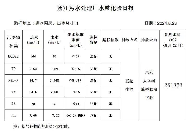 汤汪污水处理厂水质化验日报(2024.8.23)