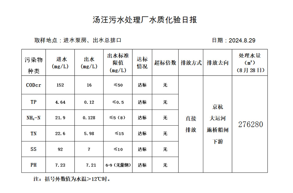 汤汪污水处理厂水质化验日报(2024.8.29)