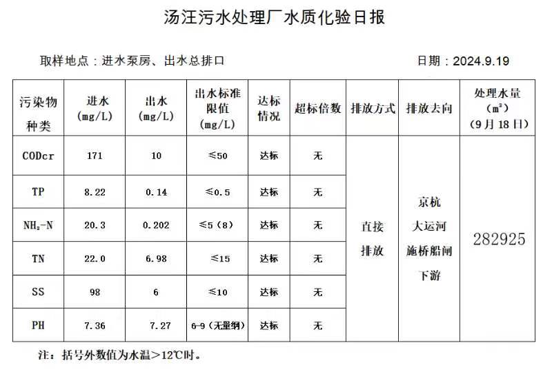 汤汪污水处理厂水质化验日报(2024.9.19)