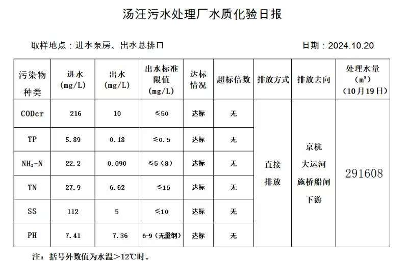 汤汪污水处理厂水质化验日报(2024.10.20)