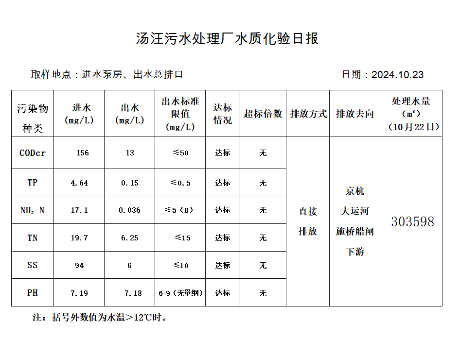 汤汪污水处理厂水质化验日报(2024.10.23)