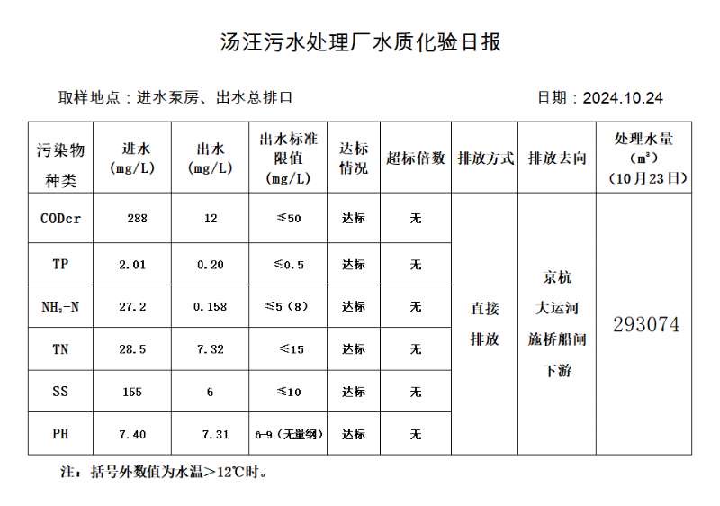 汤汪污水处理厂水质化验日报(2024.10.24)