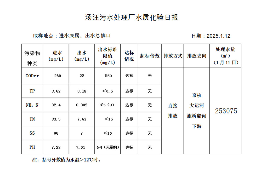 汤汪污水处理厂水质化验日报(2025.1.12)