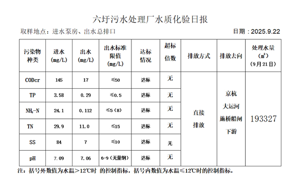 六圩污水处理厂水质化验日报(25.9.22)