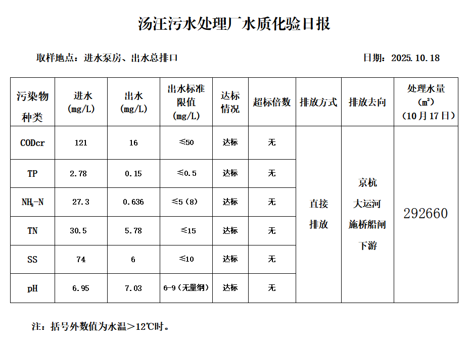 汤汪污水处理厂水质化验日报(25.10.18)