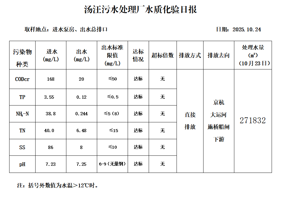 汤汪污水处理厂水质化验日报(25.10.24)