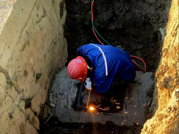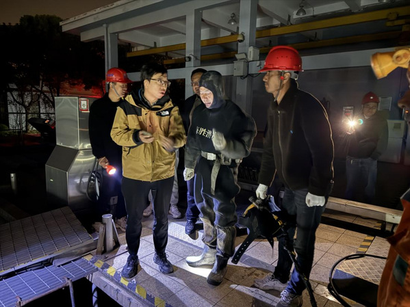 碰接施工正式开始前,洁源公司再次开展现场技术交底,除重申作业规范与安全准则外,结合现场实际,对夜间照明布局、施工设备就位精度、周边交通动线规划等细节进行了最终确认与动态微调,帮助各关键岗位人员对作业任务形成清晰统一共识。作业开始后,各施工小组严格按照既定方案推进工作,为抢抓夜间进水量相对较低的窗口期,同步开启5个施工作业点,各点位分工明确、衔接高效,施工过程井然有序,最终在19小时内高效完成了管道碰接任务。