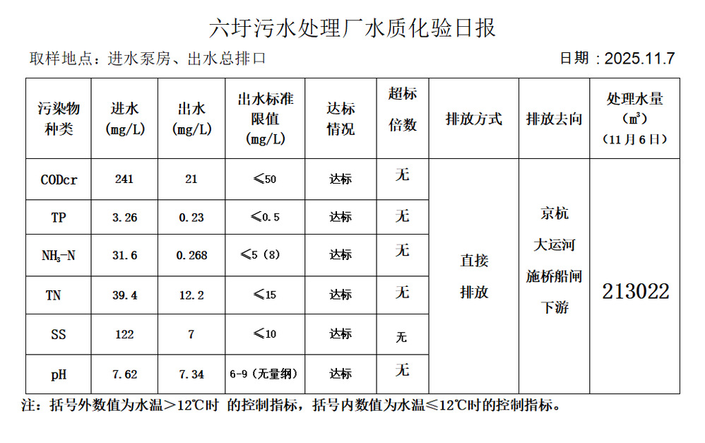 六圩污水处理厂水质化验日报(25.11.7)