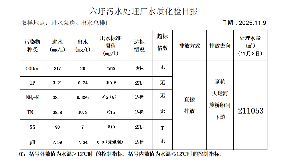 六圩污水处理厂水质化验日报(25.11.9)