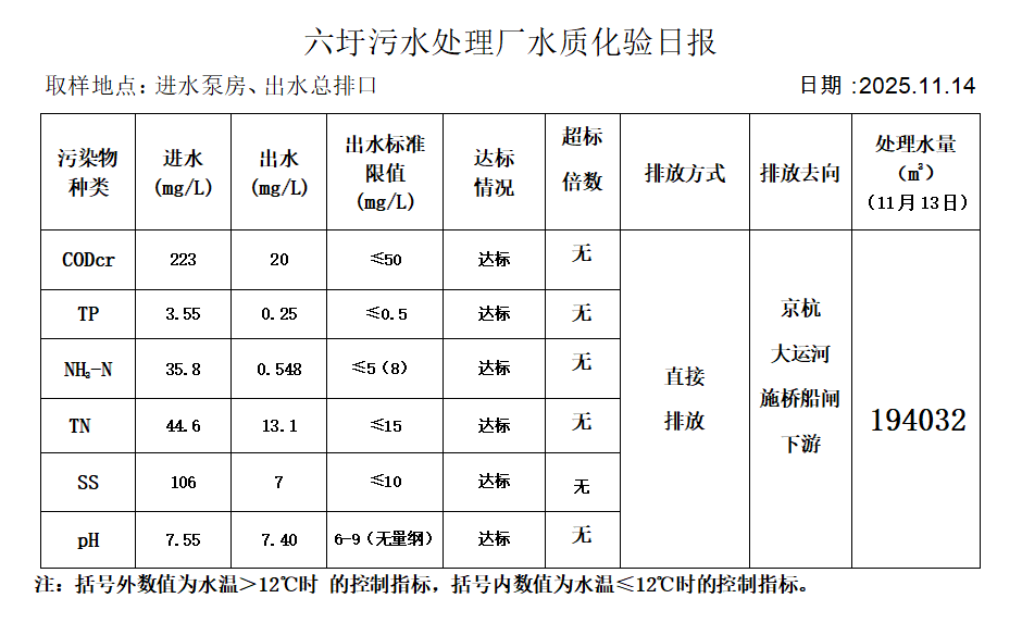 六圩污水处理厂水质化验日报(25.11.14)