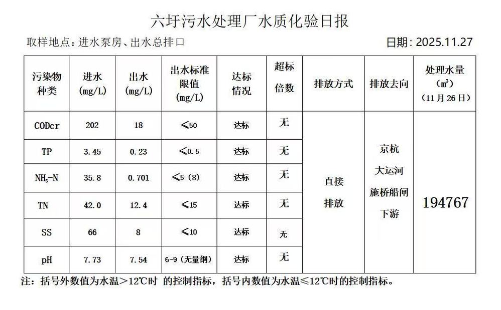 六圩污水处理厂水质化验日报(25.11.27)