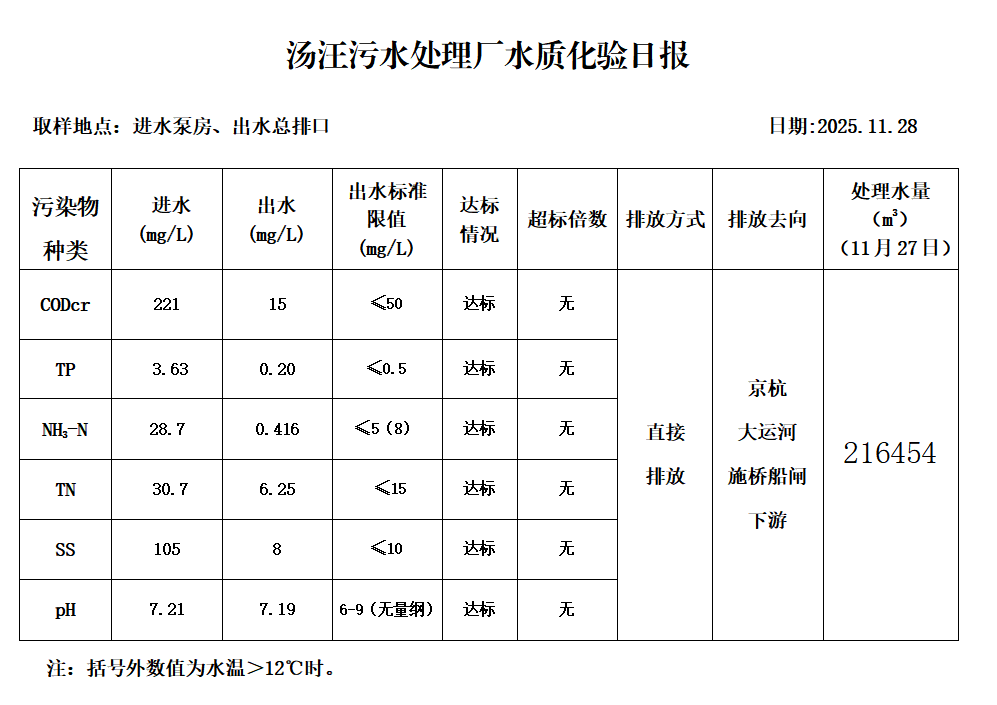 汤汪污水处理厂水质化验日报(25.11.28)