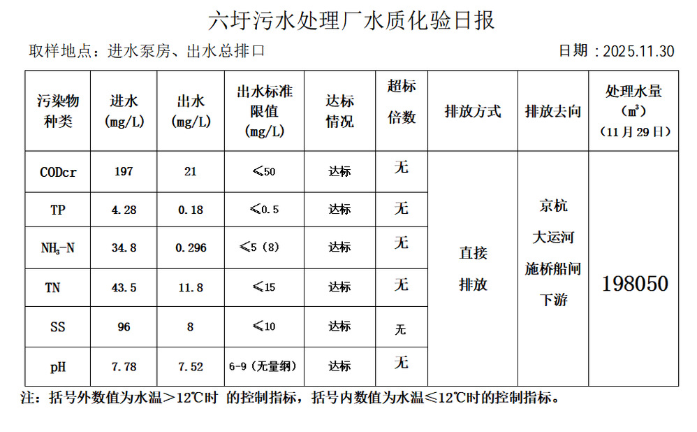 六圩污水处理厂水质化验日报(25.11.30)