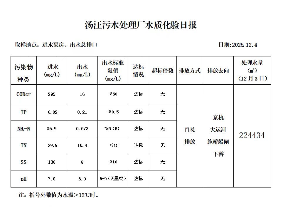 汤汪污水处理厂水质化验日报(2025.12.4)