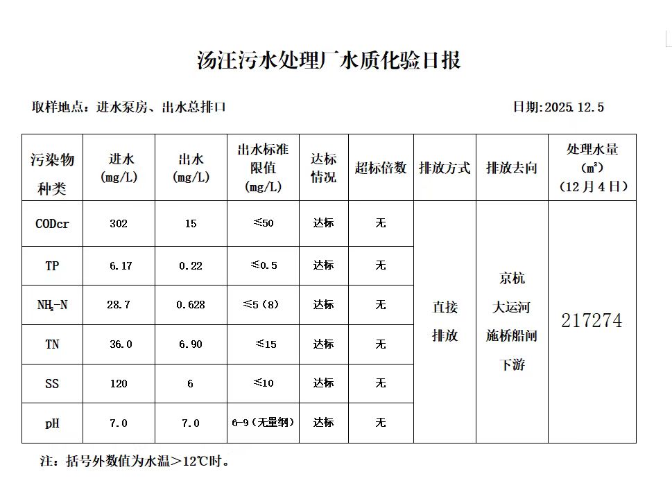 汤汪污水处理厂水质化验日报(2025.12.5)