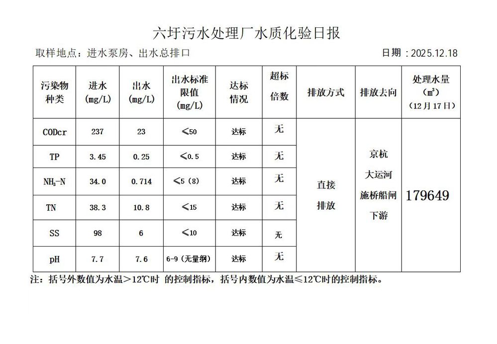 六圩污水处理厂水质化验日报(2025.12.18)