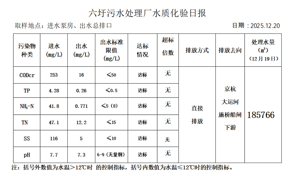 六圩污水处理厂水质化验日报(2025.12.20)