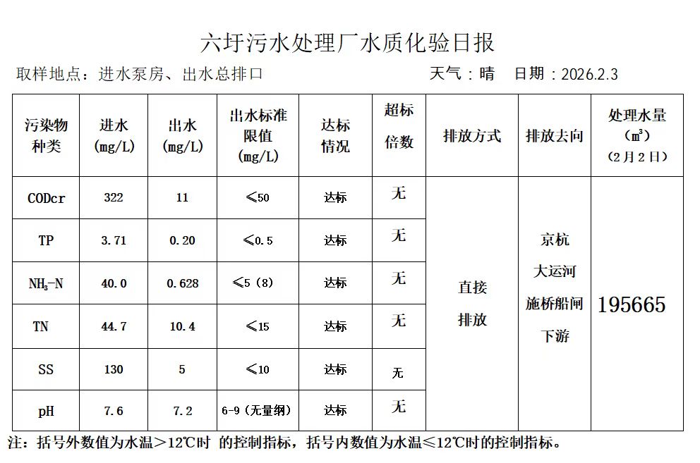 六圩污水处理厂水质化验日报(2026.2.3)