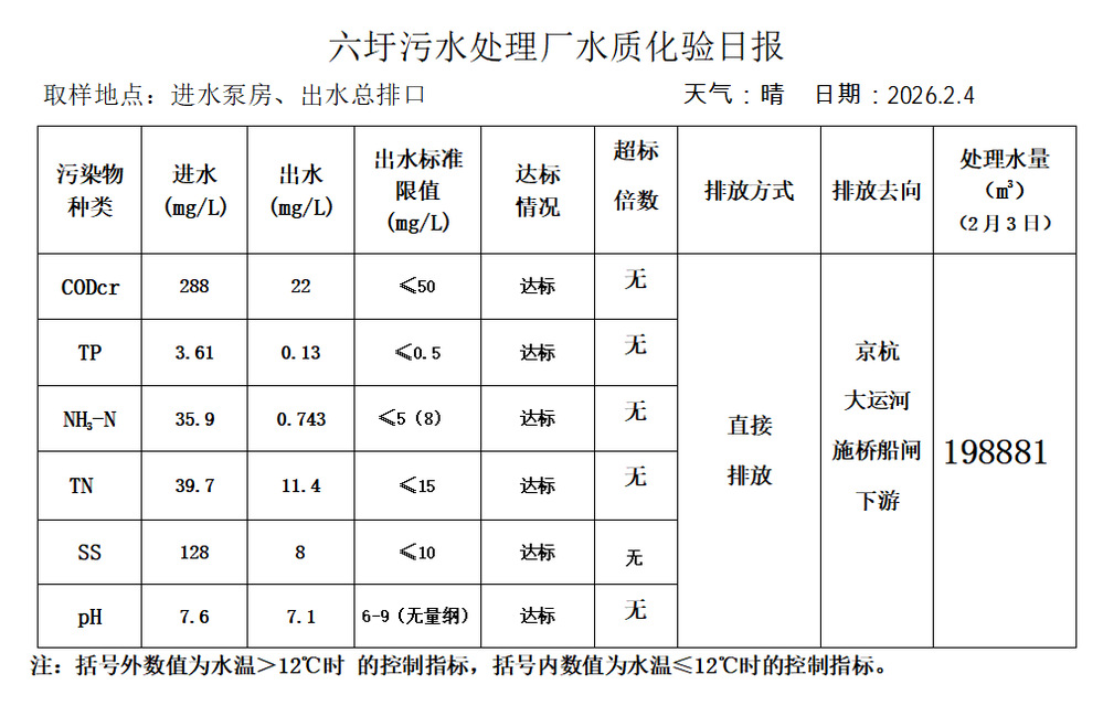 六圩污水处理厂水质化验日报(2026.2.4)