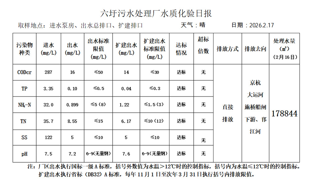 六圩污水处理厂水质化验日报(2026.2.17)