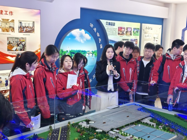 在公司讲解员的引导下,师生们首先走进一楼环保展示厅,借助图文展板与沙盘模型,全面了解厂区污水处理规模、工艺流程以及其在扬州城市水环境治理中筑牢生态屏障的重要作用。随后,大家来到核心中控室,看着屏幕上实时更新的水质参数、全自动运行的设备调控系统,聆听智慧化治污、远程监测管控的技术讲解,真切感受到科技赋能环保的高效与便捷,对现代化污水处理模式有了全新认知。